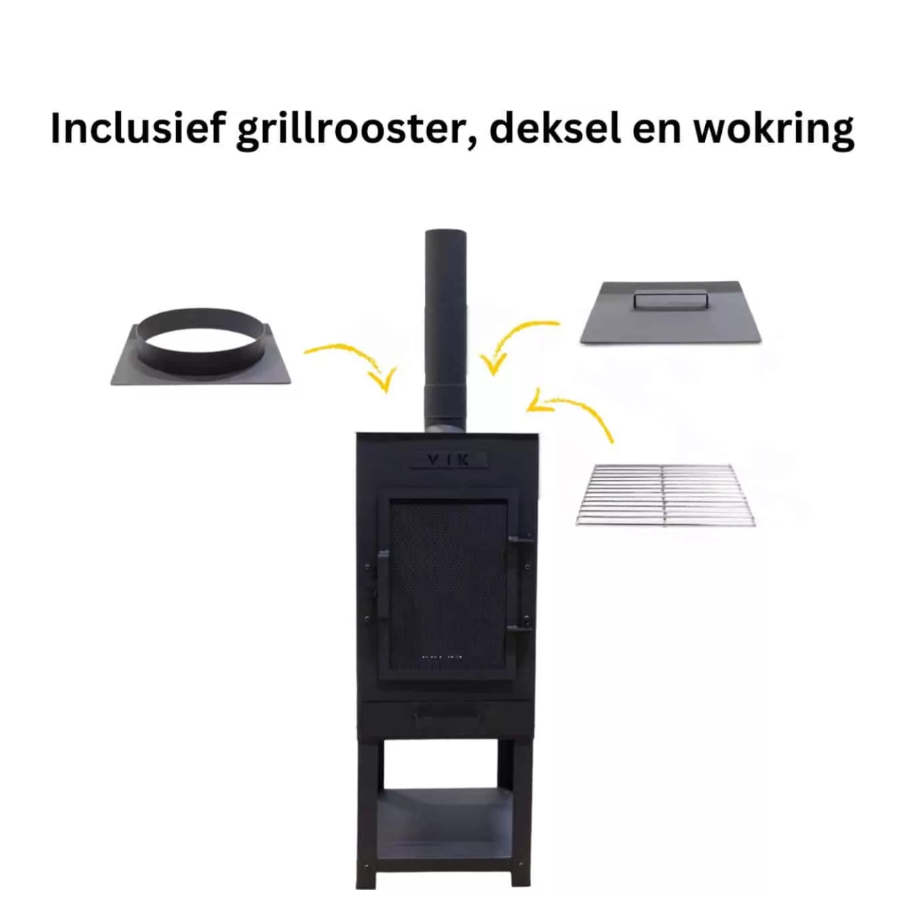 Aslade ,Deksel ,Grillrooster ,Vonkenscherm ,Wokring |